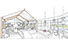 This 6200 sq. ft. home is located on the rolling hills of the Oak Ridges Moraine, 40km north of Toronto. The client purchased this 50 acre property to create a private winery and sea buckthorn orchard on the agricultural land that surrounds his home. Its placement of the “S” shaped plan on a south facing hillside affords views across the planted fields and orchards to an adjacent forest and small lake below, with Toronto’s skyline glittering in the distance.