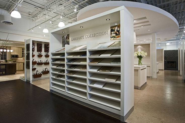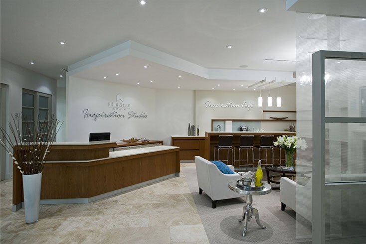 This 4,500 sq. ft. interior for Brookfield Homes (now Brookfield Residential) is organized to ease the process that each homeowner engages in for the selection of interior finishes for their recently purchased home. Upon arrival, clients first relax in the entry waiting area with its Inspiration Café, then proceed through a gallery of living, kitchen and washroom vignettes and material sample displays organised along a linear gallery.