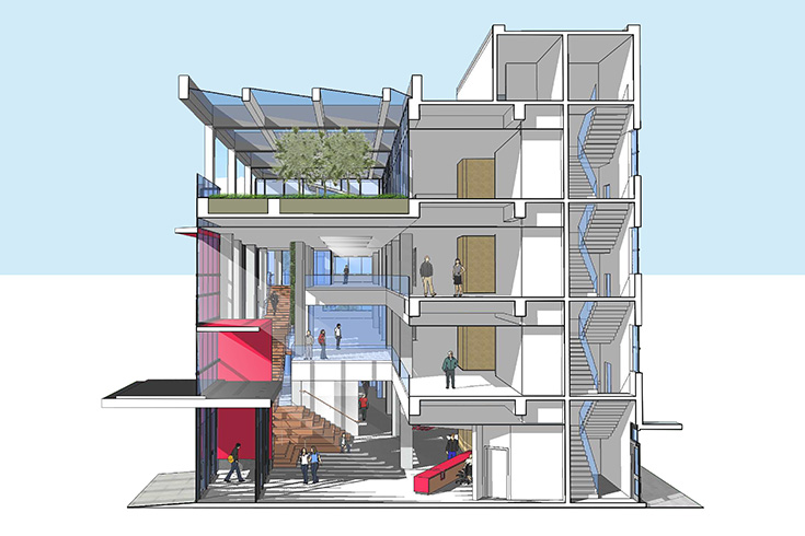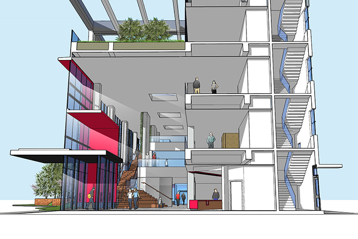This 85,000 sq/ft., four storey, office building is the head office and public component of a larger complex of industrial buildings for the Nantong Calliper Manufacturing Company. Designed to accommodate the administrative staff and corporate team, this building is organized around a three storey atrium and interconnecting stair and greenwalls to encourage staff to move freely throughout the building.