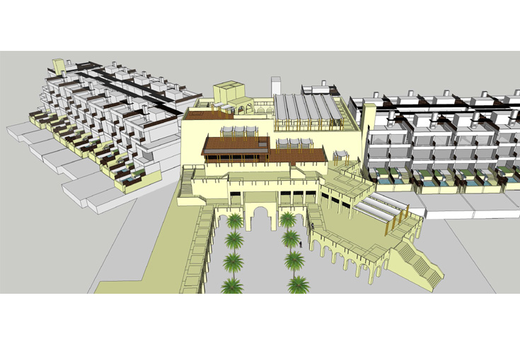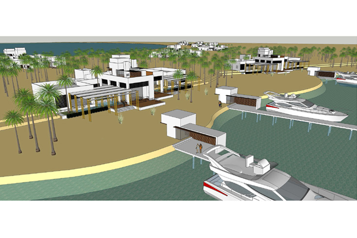 This Moroccan-themed resort in the Persian Gulf near Doha was designed by Howard Rideout for B+H Architects, to create an island retreat that encourages guests to explore the entire archipelago during their stay.  A 5-star hotel on the central island is designed to resemble a Moroccan hilltop citadel with the 100 luxury villas that dot the islands representing the surrounding village.