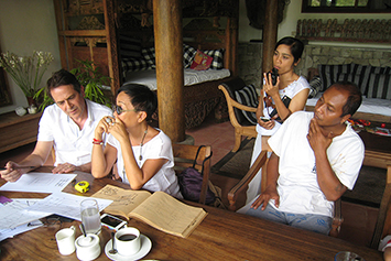 Howard travelled to Bali, stayed in the luxury resort of Maya Ubud Resort and Spa, and made a trip to Ubud with Sin Sin Man to meet the local craftsman/woodworker who would execute her latest designs. Howard met Sin Sin at her gallery in Hong Kong and found mutual interests in the arts. Sin Sin is well established within the art community with her three galleries in San Wan district of Hong Kong. They spent the afternoon creating mock-ups of the wood totems, perfecting the proportions and designing them with the local expert in Balinese woodcarving at hand to give his input on the capabilities of the native woods.