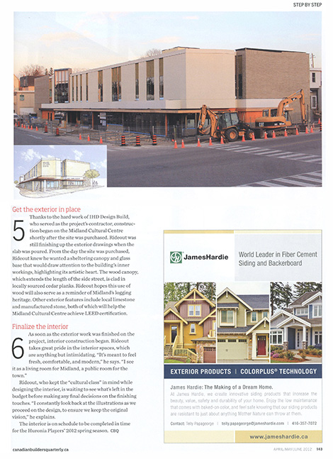 Thalia A-M Bruehl from Canadian Builders Quarterly writes about HRA’s design process as a way to “bring a cultural centre to life.” The article highlights the hand drawn illustrations Howard created and how the Midland Cultural Centre project came to fruition.