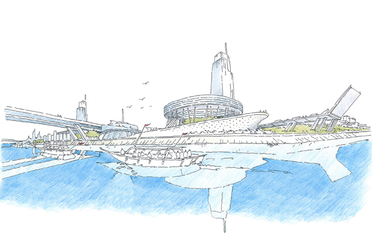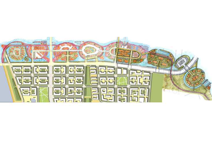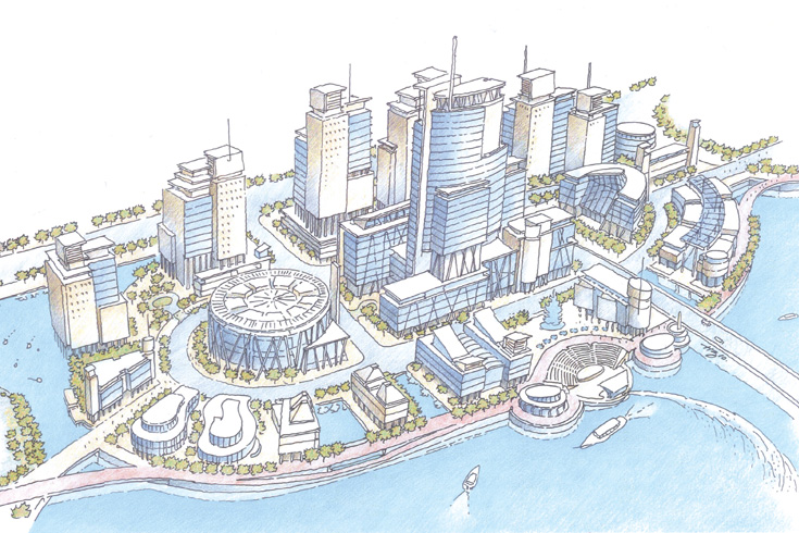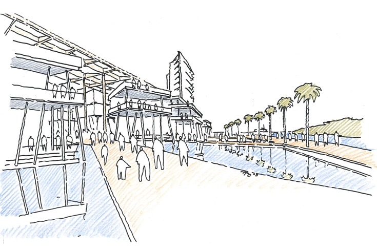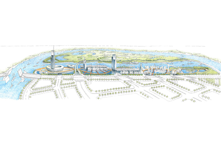 "Dockside at Figure 8", is a 1.5km long waterfront playground for Tianjin’s new Binhai District. An undulating boardwalk that forms a series of 8’s, encircles 8 distinct islands of activity along a historic canal. On its west end, the buildings are large and dramatic that responds to the city core, and steps down in scale as it moves toward the east end, integrating with the adjacent city park. Howard Rideout is the chief designer of this project as a consultant to B+H Architects, Shanghai.